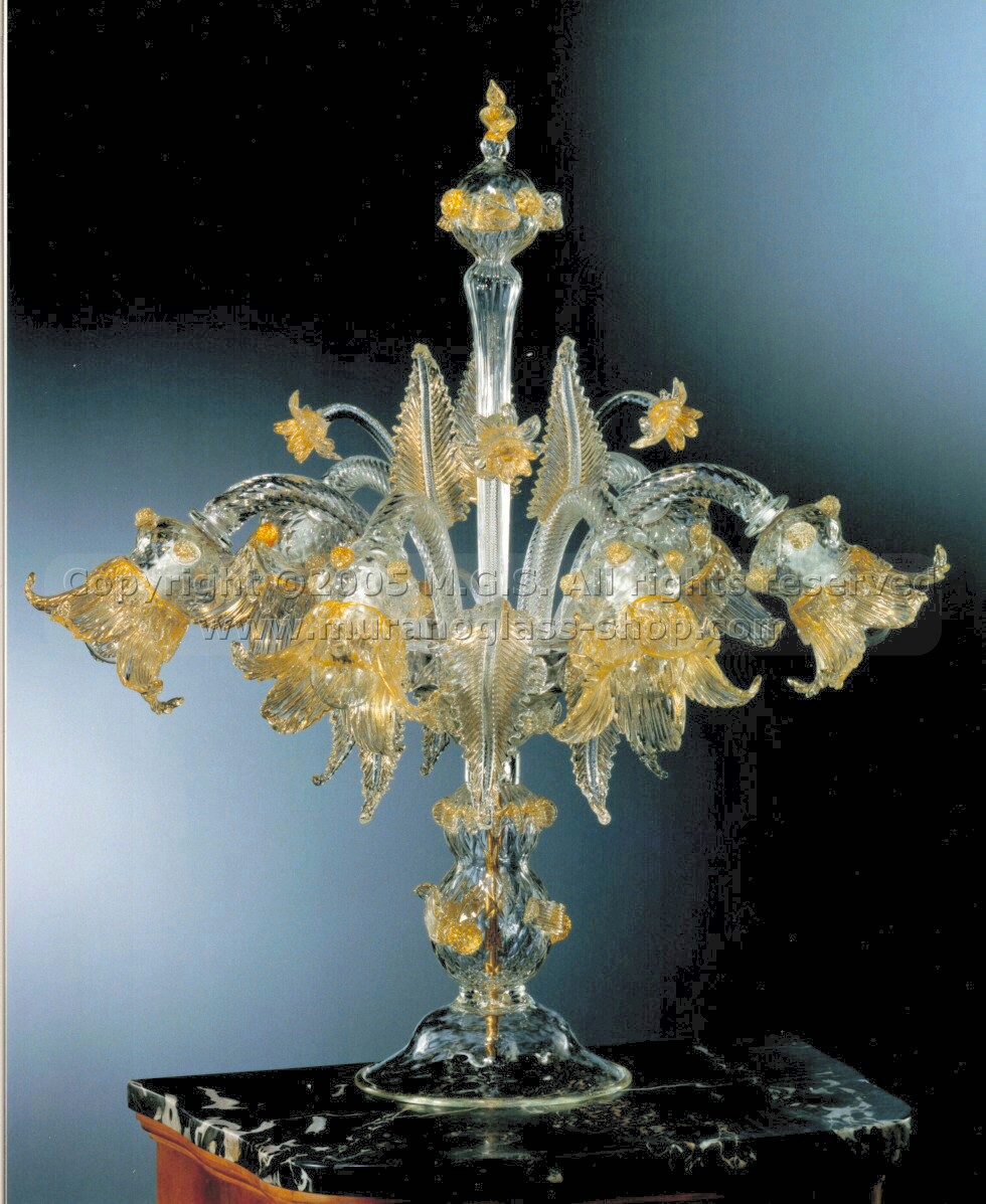 Flambò of table with gold decorations at six lights.